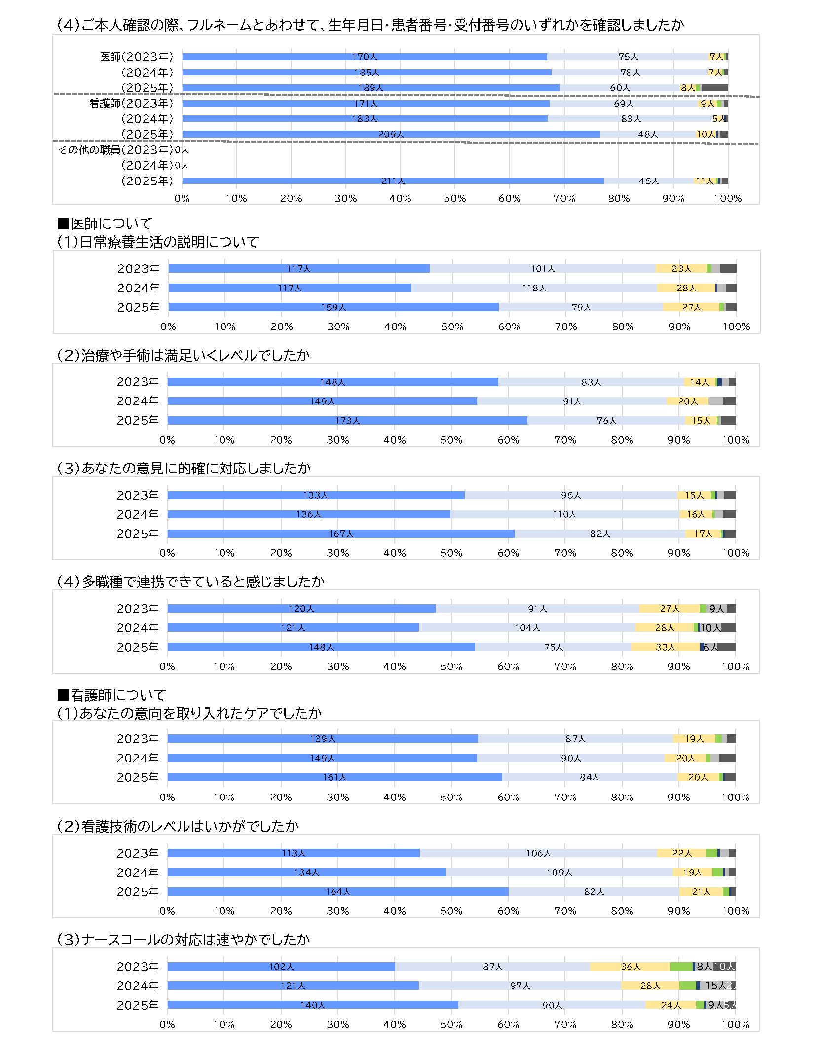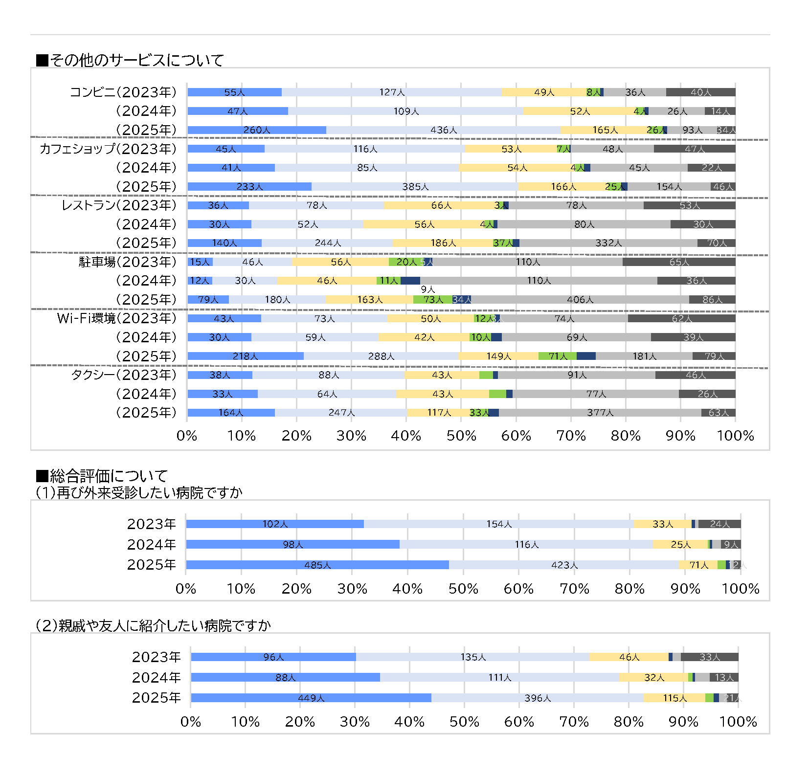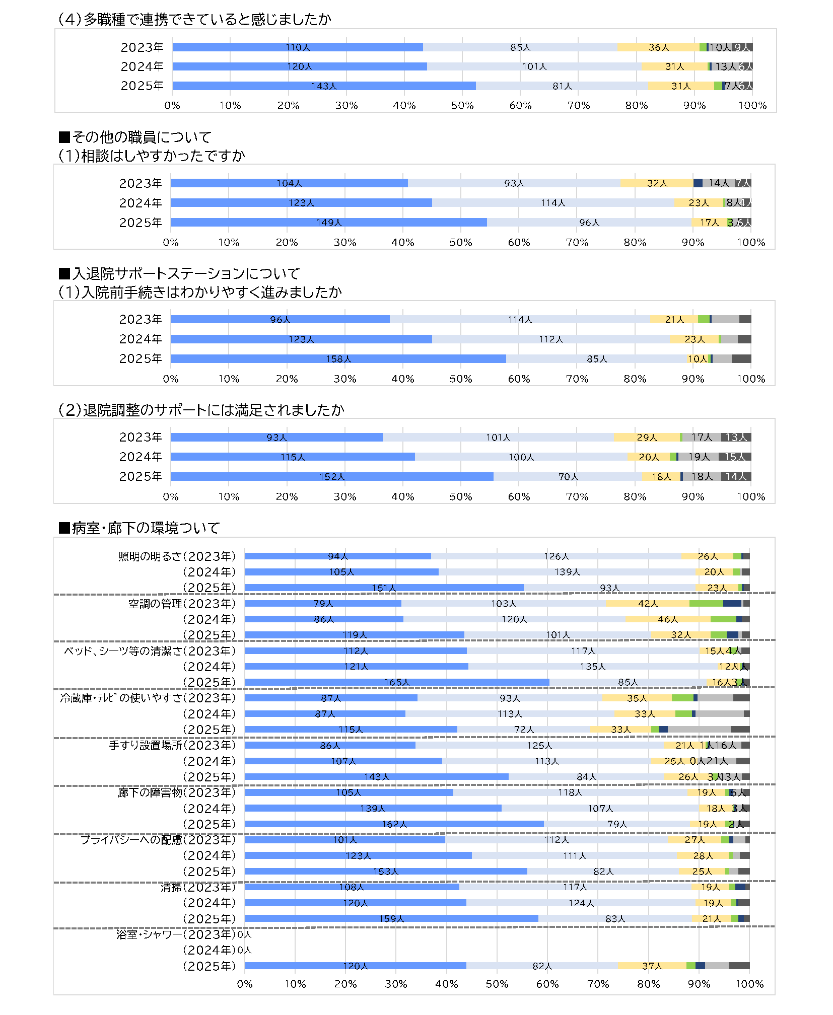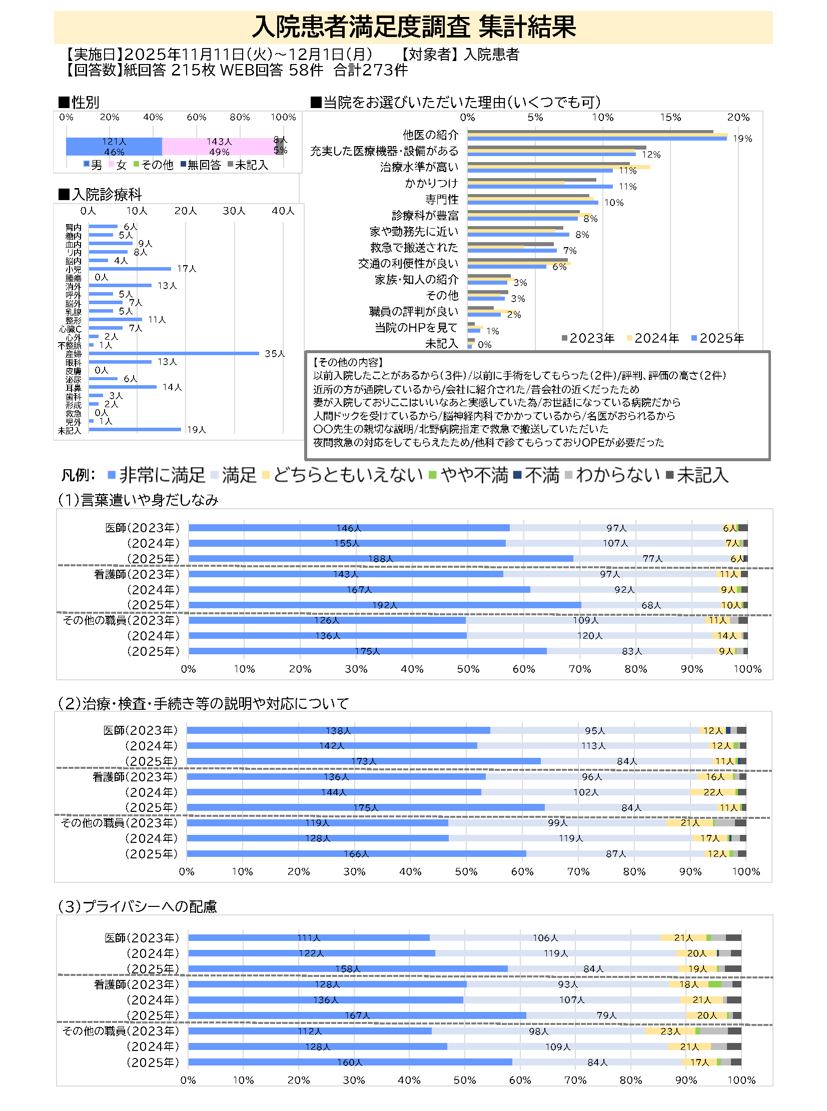 Kitano Hospital is continually working to translate patient feedback into improvements. Every autumn, we conduct a questionnaire survey of outpatients and inpatients to identify areas for improvement and improve our patient services.