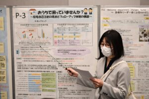 Our hospital's nursing department is affiliated with the Medical Research Institute's Department of Health and Wellness Research. Furthermore, one of our nursing department policies is "5. As nursing professionals, we will continually develop our practical, educational, and research capabilities and strive to develop the organization." One of the skills required of nurses at our hospital is research ability. We have established a support system that provides opportunities and venues for improving this ability.