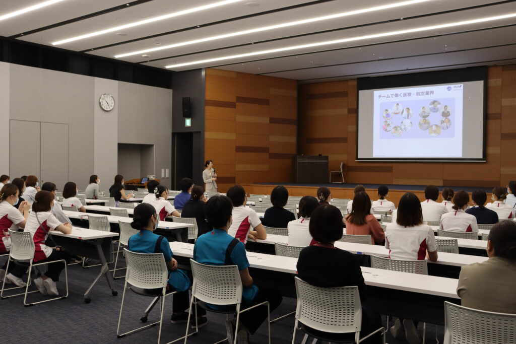当院では、2021年より航空会社ANAグループと連携した人材育成プロジェクトを行っています。その一環として、2025年10月15日、CA(客室乗務員)や地上係員の経験者を講師に招いて「接遇研修」を実施しました。