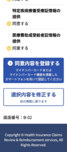 ⑦「同意登録完了」が表示されれば登録完了です。診療日当日は当院にてオンライン上で資格確認を行います。