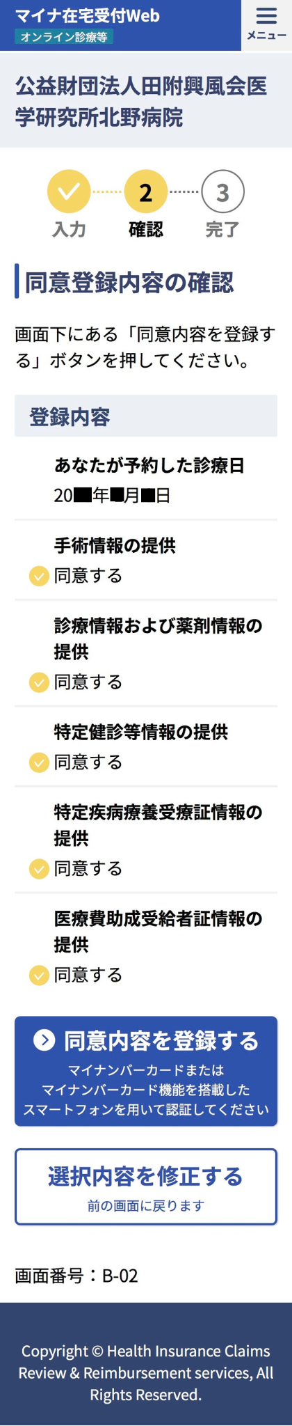 ※「同意登録完了」の患者さんは、検査または診察日にマイナンバーカードは必要ありません。