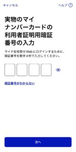 ⑤マイナンバーカードご登録時の4桁の暗証番号を入力してください。