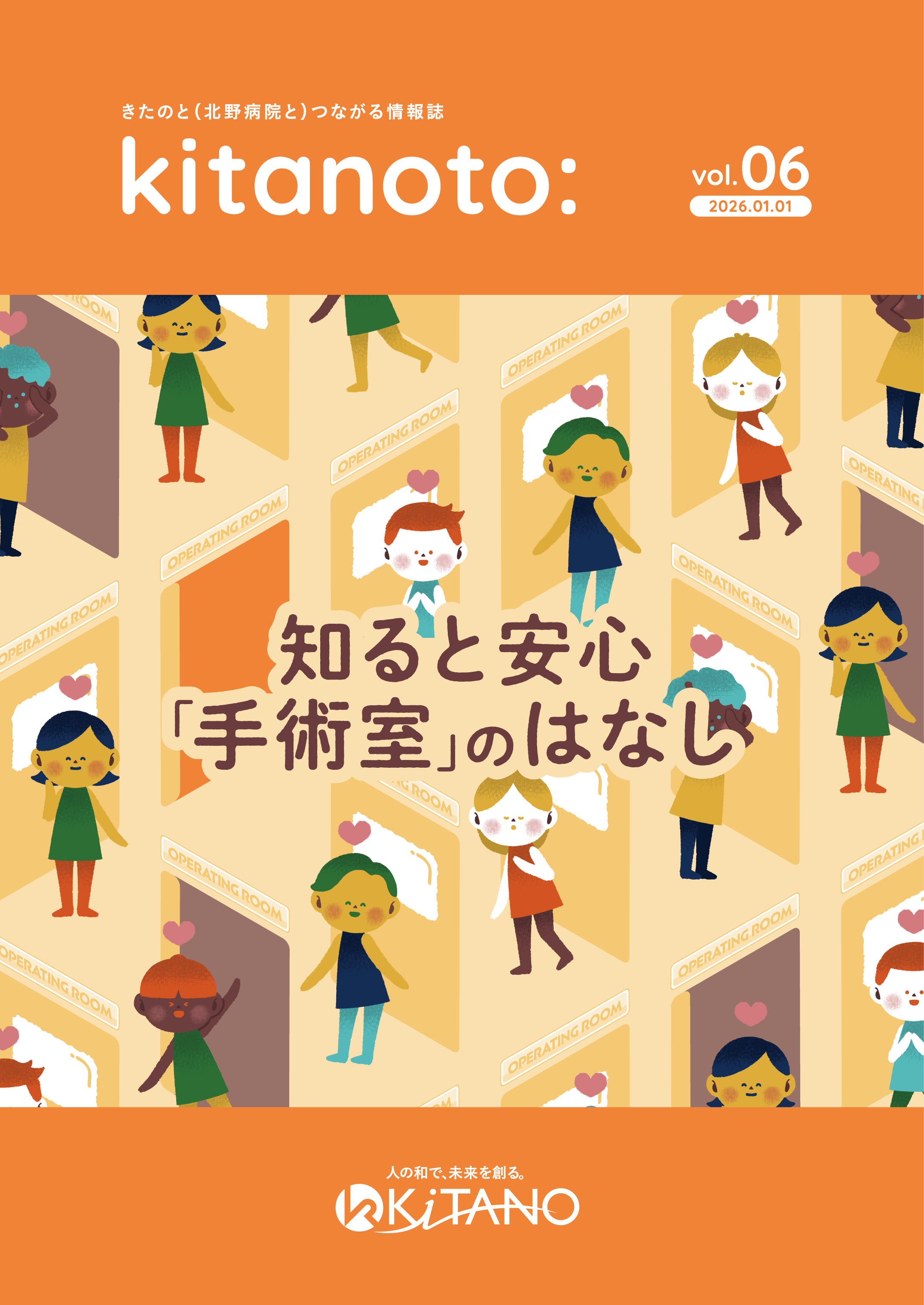 情報誌「kitanoto:(きたのと)」は、北野病院と人々をつなげ、"to:すべてのみなさん"へ届けたい!という思いをこめて作っています。